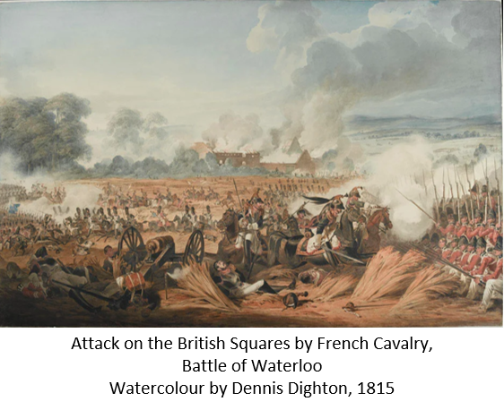 On 18th June 1815, James and his Regiment had assembled at Hougoumont, about 12 miles (20km) south of Brussels. Under the command of the Duke of Wellington, around 68,000 soldiers, of which James’s 51st Regiment numbered 795, alongside 50,000 Prussian Army troops led by Field Marshal Bucher, faced up to Napoleon’s 73,000-strong French Army at what was to become known as the Battle of Waterloo.