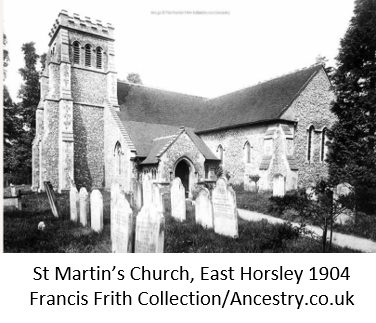 The 1881 Census showed that nothing had changed, and just eight days after that Census, Peter passed away in the Workhouse on 11 April from ‘decay of age’, aged 78 17, 18.  Like his wife Sarah more than 26 years before, and his nephew 20 years previously, Peter was buried at East Horsley’s St Martin’s Church 19, 20, 21.